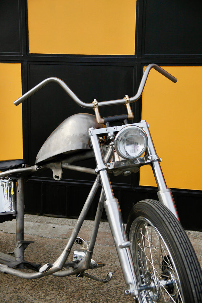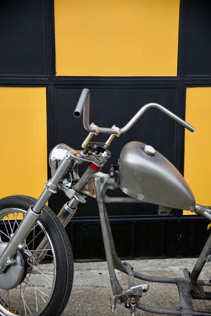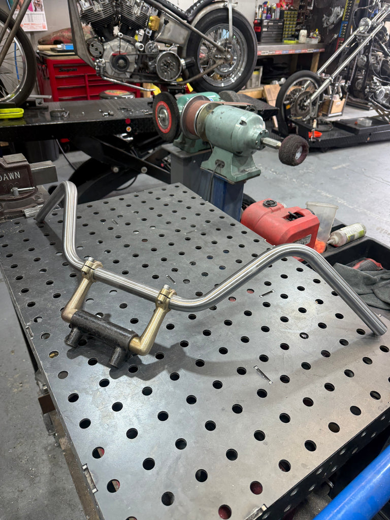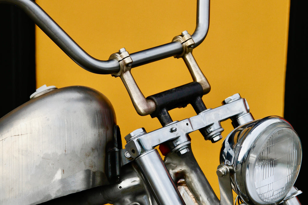 Continuing on with our classic handlebar riser range, a fresh take on a slimline dogbone style set up. Right angle 'dog ear' to suit early HD split riser clamps OEM 56104-52